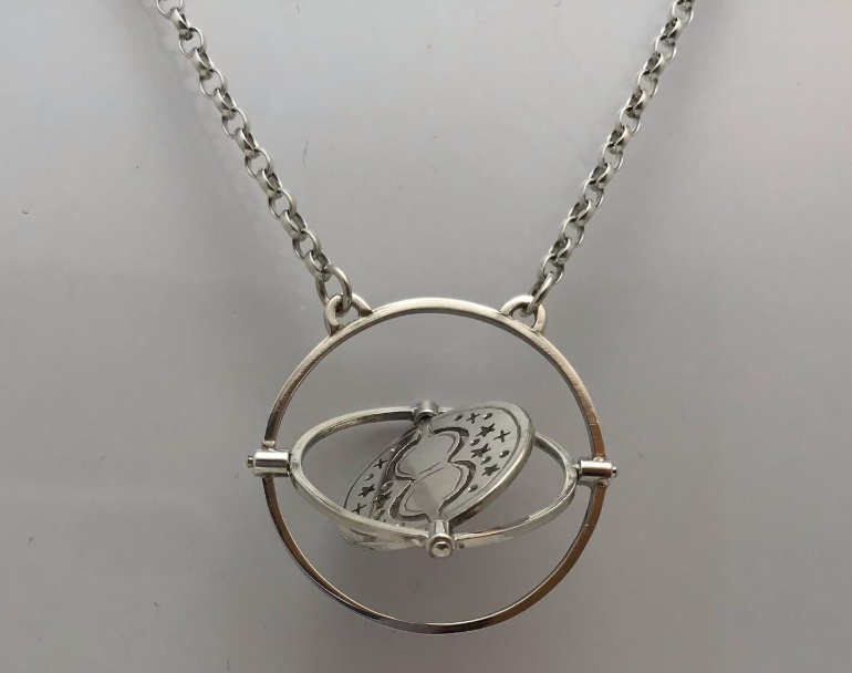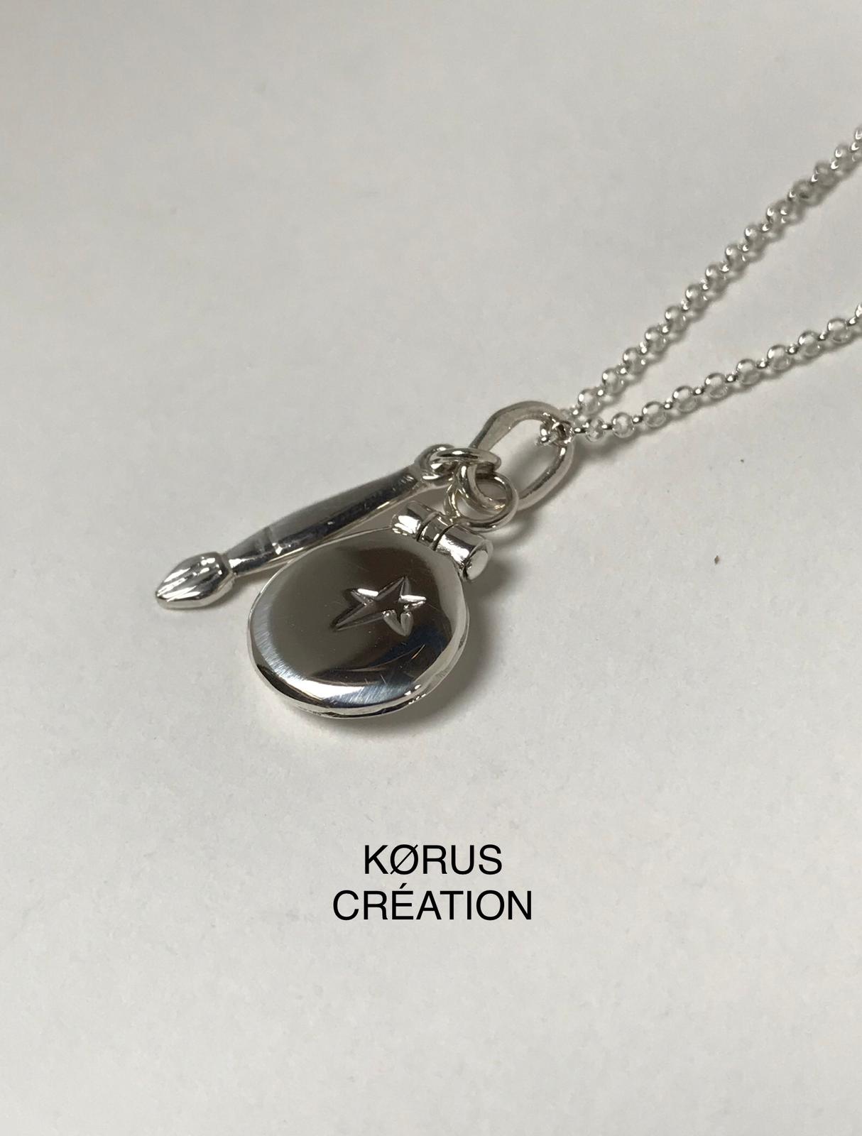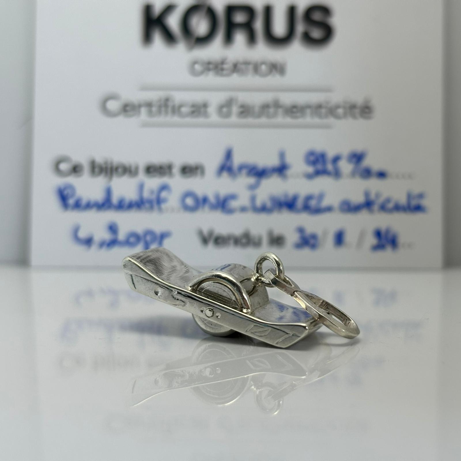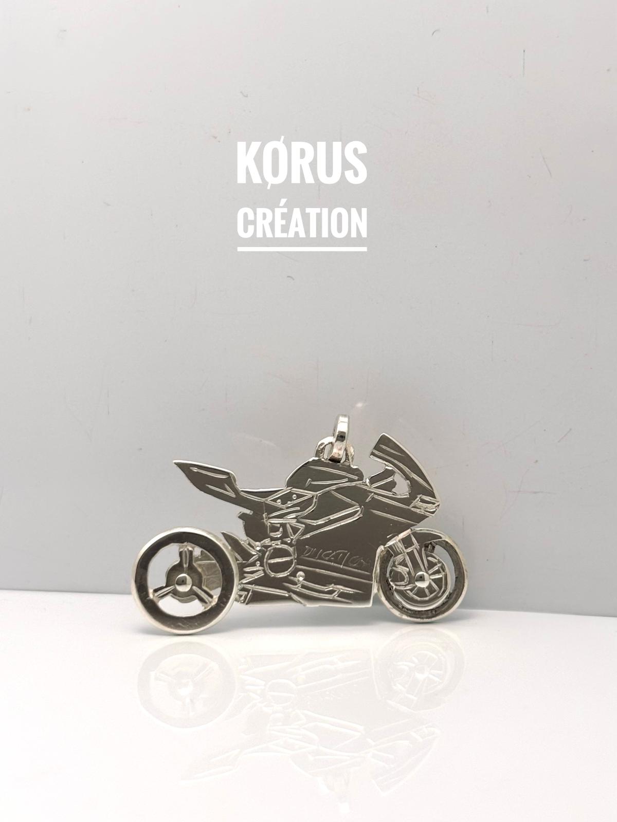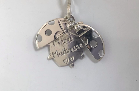 Mes bijoux articulés sont nés lorsque j’étais en CAP, avec l’envie de fabriquer ma motocross en pendentif. Motarde passionnée de mécanique et curieuse par nature, j’ai décidé de faire une moto vue de profil avec les roues qui tournent, et l’étude du pilote a été de longues heures de réflexion avec mon papa motard et grand technicien.